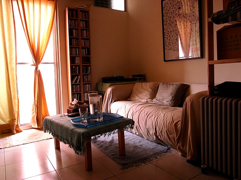 夢裡,我住在顏色復古的磨石子地板老公寓,有著顏色陳舊的木頭五斗櫃跟簡單的屋內裝潢,棉布質的家具讓我感覺溫暖的,我靠著沙發、左手牽著個人、舒適的坐著...